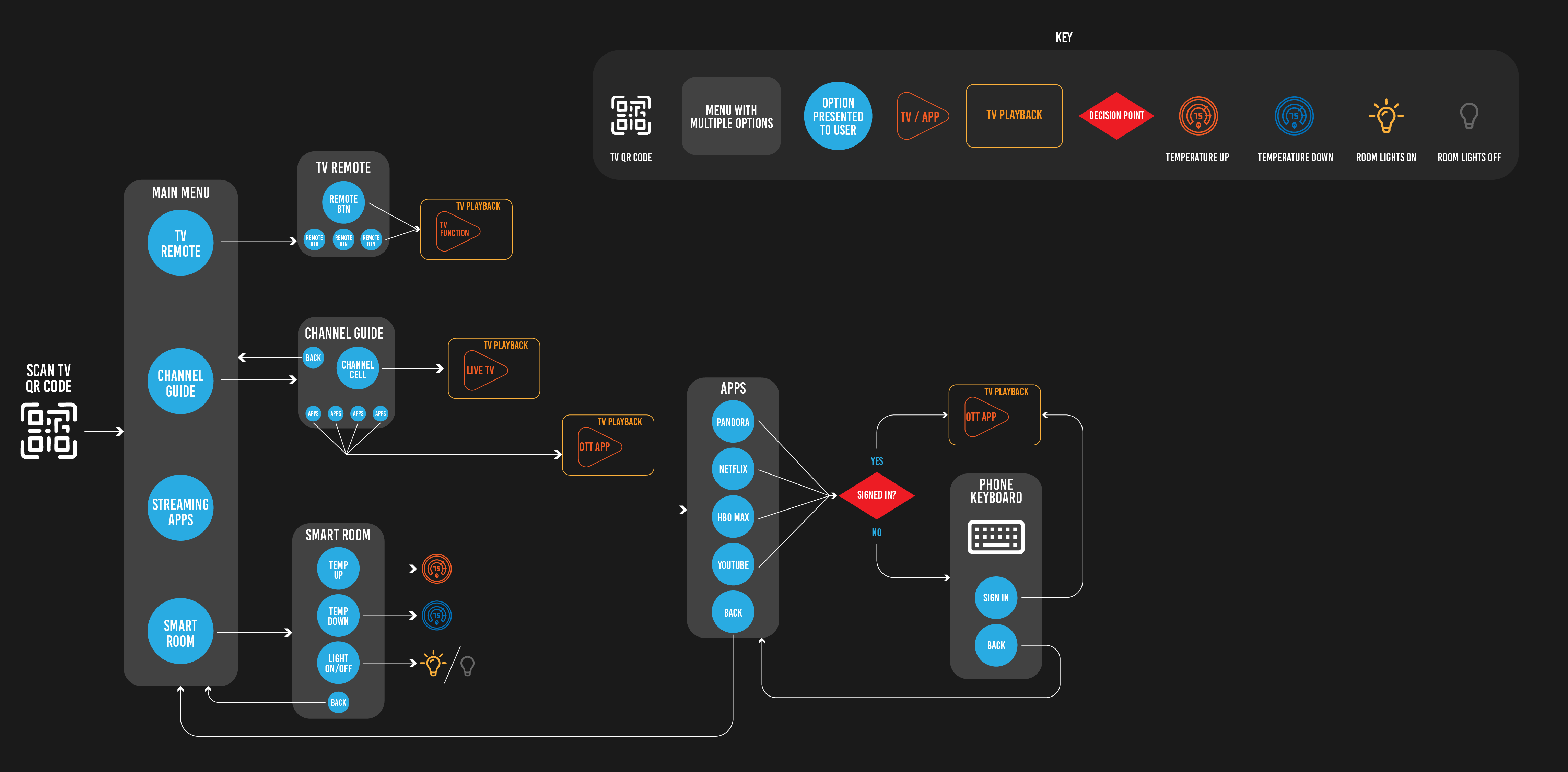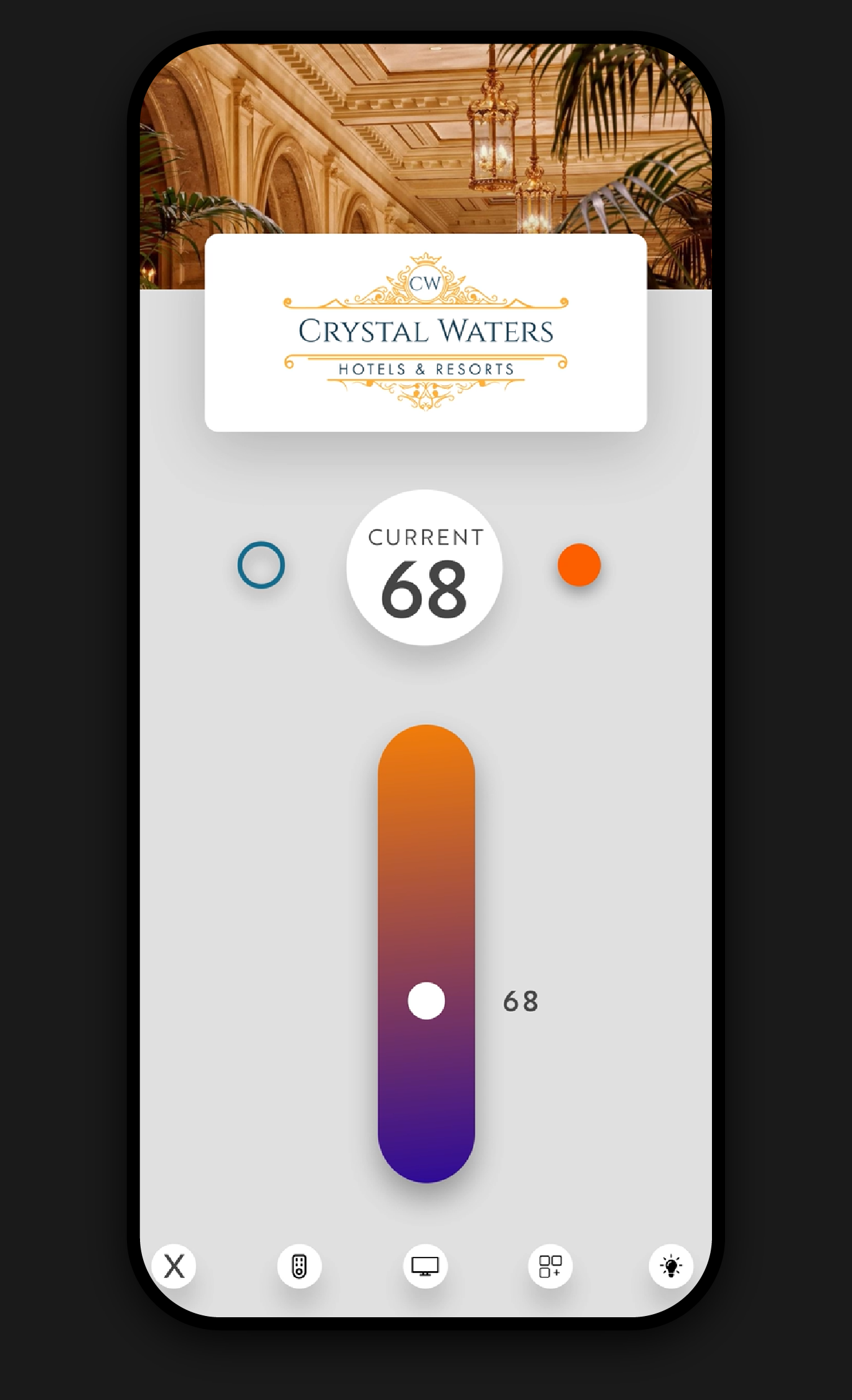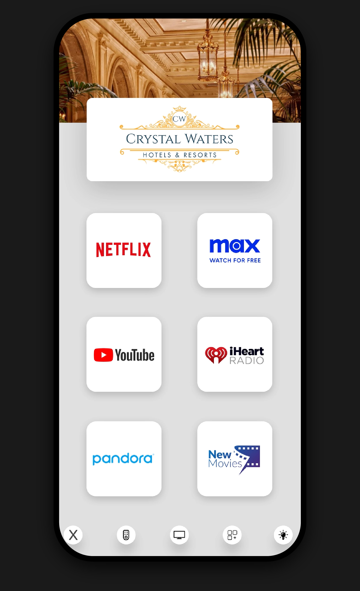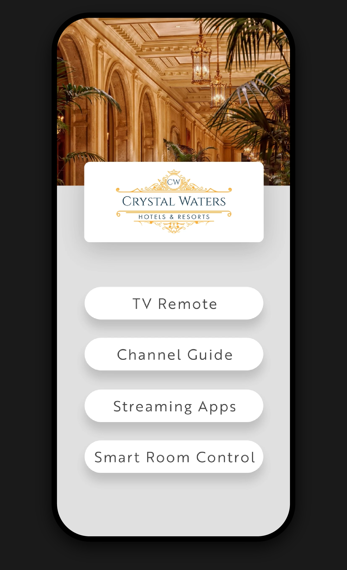 Previous efforts lacked good design, layout, and usability. The goal was to develop a mobile app that allowed hotel guests to control in-room TVs, connect devices, and manage smart-room features, all from their phone. The UI had to be simple, accessible, and scalable.